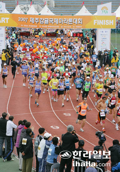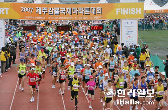 도내 최대 마라톤 축제이자 국제대회로 거듭나고 있는 '2007 제주감귤국제마라톤대회(제5회 한라마라톤)'가 화창한 날씨속에 각종 신기록을 경신하는 등 풍성한 수확을 거뒀다.