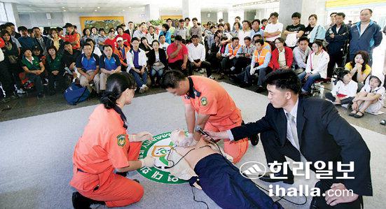 | ▲이날 사업장별 2인 심폐소생술 경연 등 응급처치경연대회도 열렸다. |