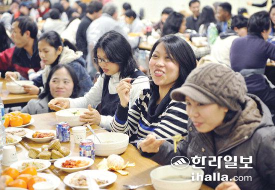 ▲고국을 떠나 제주도에서 일하고 있는 외국인 근로자와 결혼 이주민을 위한 '외국인근로자와 함께하는 설 맞이 나눔 잔치'가 18일 제주시자원봉사센터와 제주외국인쉼터 주관으로 제주중앙성당에서 열렸다. /사진=강희만기자 hmkang@hallailbo.co.kr