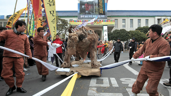 | ▲탐라국 입춘굿놀이의 상징인 낭쉐. 소의 해를 맞아 열리는 이번 행사는 그래서 더욱 뜻깊다. 소의 힘찬 걸음마다 제주사회에도 만복이 깃들기를 기대한다. 오는 2월6일과 7일 제주시 목관아와 제주시청 일대에서 펼쳐진다. |