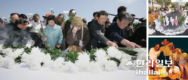 60년동안 울다 지쳐 메말라 버린 섬을 건강한 기운을 품은 곳으로 되살려내는 해원의 예술굿판이다. 옛 정뜨르비행장 인근을 찾는다. 예비검속과 군사재판의 부당함을 안고 숨을 거둔 원혼을 위로하고 진상규명을 위한 발굴 사업의 지속성을 확인하는 자리다. 제주칠머리당영등굿보존회의 차사영맞이를 비롯해 춤패 너울, 사물놀이 마로, 탐라사진가협회, 제주작가회의 등이 공연과 전시를 준비했다.