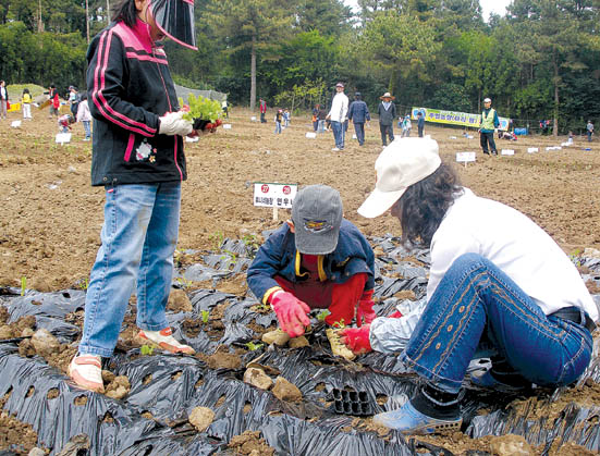 지난 2003년에 시작해 올해로 7년째를 맞은 아리팜주말농장은 주5일 근무제 확산 등으로 가족단위 여가선용과 자녀의 농사체험 학습장으로 각광받고 있다.