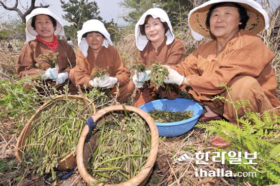 그래서 해마다 이쯤이 되면 들판이나 수풀안에서 단백질, 당질과 칼슘, 철분등의 무기질이 많은 고사리를 채취하는 도민과 관광객들의 모습을 쉽게 만날 볼수 있다. 제주 도민들은 3~4월 봄에 채취한 고사리는 말려서 저장해 두었다가 수시로 물에 불려 나물로 먹는다.