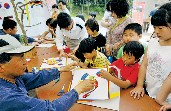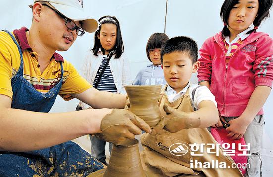 ▲사진은 지난해 5월 탑동해변공연장 일대에서 열린 제주시평생학습축제에 참가한 어린이들의 체험모습.