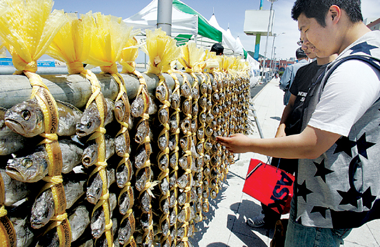 | ▲제주특산품을 구경하는 도민과 관광객들의 모습 |