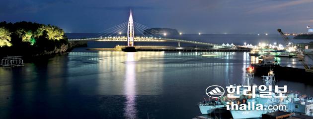 ▲ '올인' '대장금' 등의 인기 TV 드라마와 '쉬리' 등의 영화 촬영지로 국내에서 손꼽는 제주는 카메라를 들이대는 곳곳마다 한 폭의 그림을 그려낸다. 올해에도 TV드라마 '태양을 삼켜라'와 '탐나는도다' 등이 제주를 주무대로 촬영됐다. 윗쪽 사진은 지난 9월 개통돼 제주의 새로운 명물로 자리잡고 있는 '새연교'(서귀포항과 새섬 연결) /사진=한라일보 DB