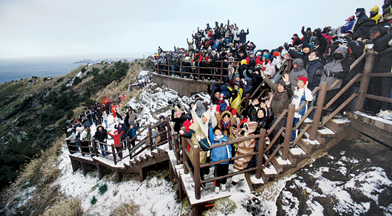 그제도 어제도 날마다 떠오르는 게 태양이다. 그런데 새해 첫날 곳곳에선 해맞이 인파가 유난스럽다. 해맞이를 위해 새벽 일찍부터 부산을 떨고 어느날처럼 동쪽에서 솟아오르는 태양을 떠들썩하게 맞으며 각별한 의미를 부여하는 건 아마도 해에게서 힘을 얻고 새로운 목표를 향해 열심히 뛰겠노라는 자기다짐이리라. 올해도 어김없이 새해 첫날 제주에서의 해맞이를 위해 관광객들의 발길이 이어질 전망이다.