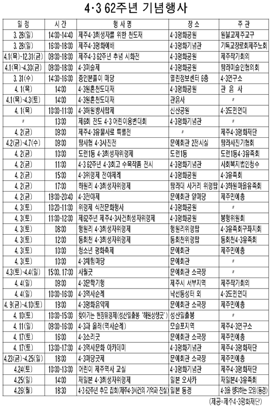 일본에서도 4·3 추모 열기를 잇는다. 4월말 재일본4·3유족회가 4·3희생자 위령제를, 도쿄의 4·3을 생각하는모임이 62주년 추모 집회를 벌인다.