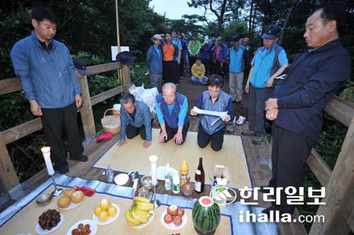▶기원제 봉행=거문오름 탐방객 무사안녕을 바라는 기원제가 10일 새벽 5시30분 여명속에서 제주시 조천읍 선흘2리 거문오름 제9룡 정상부에서 봉행됐다.