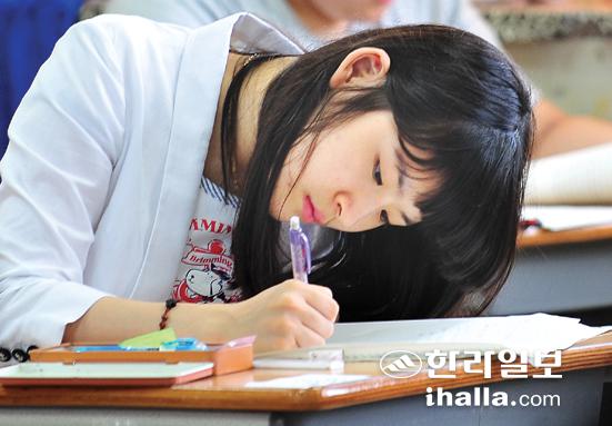 ▲10일 제주사대부고에서 진행된 JDC 논술대회는 도내·외 32개교서 320명이 응시하는 등 성황을 이뤘다. /사진=이승철기자