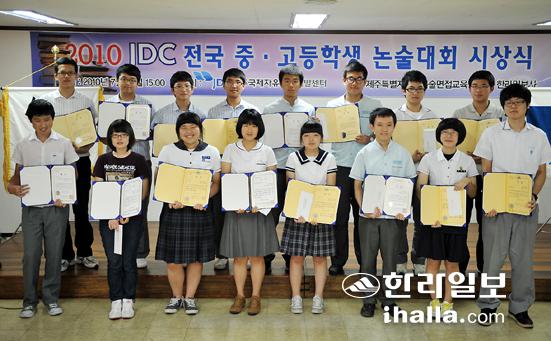 전국 중·고등학생 논술대회 입상자들이 한자리에 모였다. 제주국제자유도시개발센터(JDC)가 주최하고 제주특별자치도논술·면접교육연구회와 한라일보사가 공동 주관한 2010 JDC 전국 중·고등학생 논술대회 시상식이 30일 한라일보사 대강당에서 열렸다.