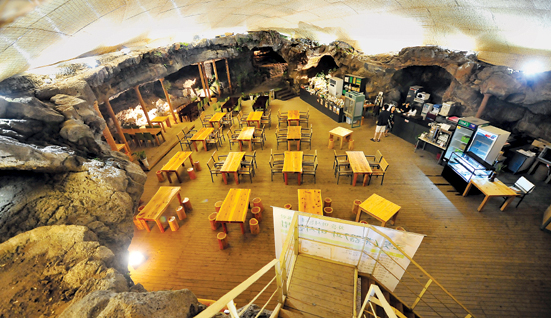거문오름 용암이 만든 동굴에 동굴카페를 만들어 국내 유일의 '천연동굴카페'를 운영하고 있다.