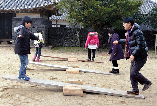 "너무 춥고 재미없다"는 아이들의 불만이 나올때쯤 그네뛰기, 널뛰기, 굴렁쇠돌리기, 팽이치기, 듬돌들기 등 옛 놀이를 실제 해볼 수 있는 마당이 펼쳐진다. 이것저것 해보다보면 이마에는 땀이 송글송글, 춥다는 말은 어느새 쏙 들어간다.