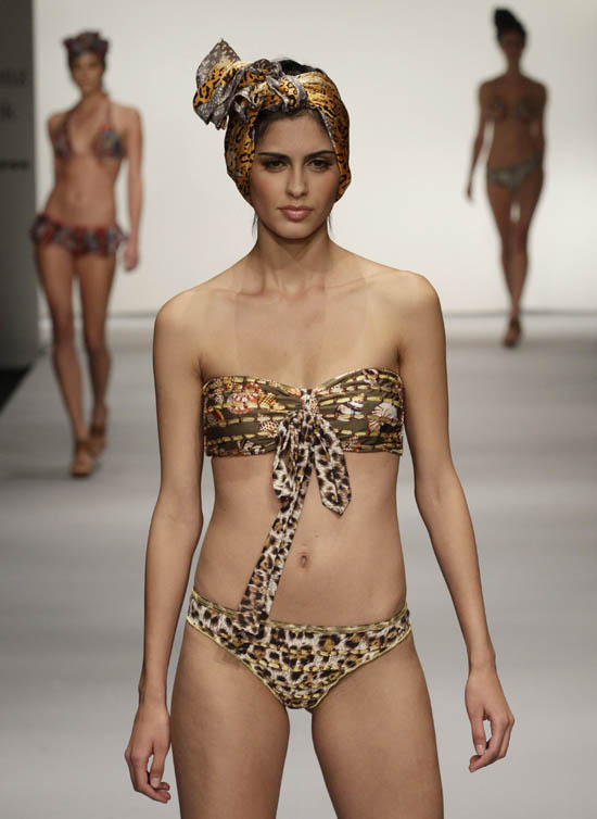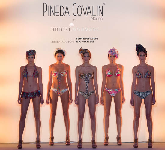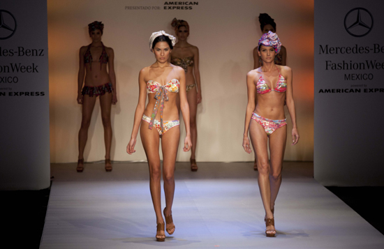 한 모델이 12일(현지시간) 멕시코 멕시코시티에서 열린 메르세데스벤츠 패션쇼에서 멕시코 디자이너 피네다 코발린의 의상을 선보이고 있다./연합