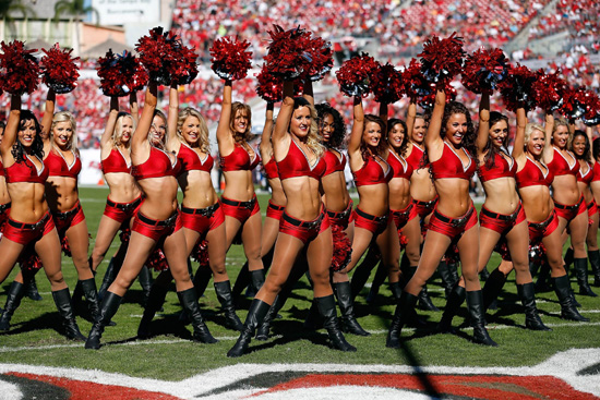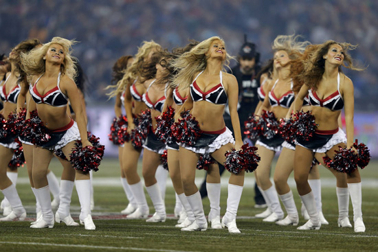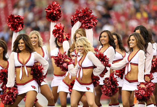 25일(현지시간) 애리조나 피닉스 스타디움에서 열린 NFL 경기에 앞서 애리조나 카디널스의 치어 리더들의 멋진 율동을 선보이고 있다./연합