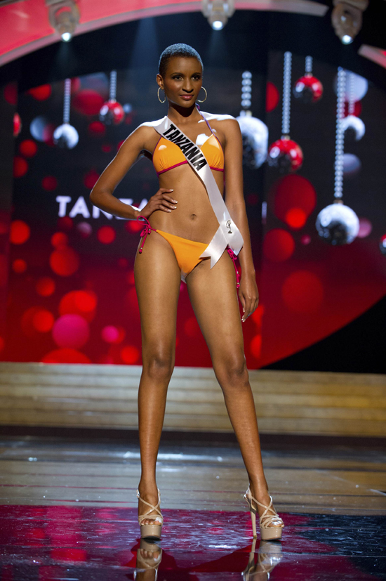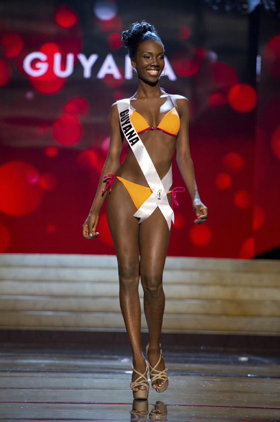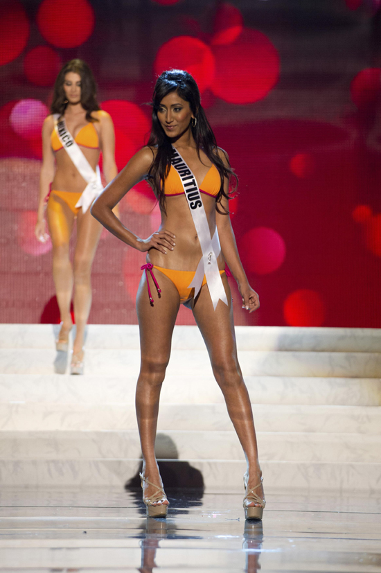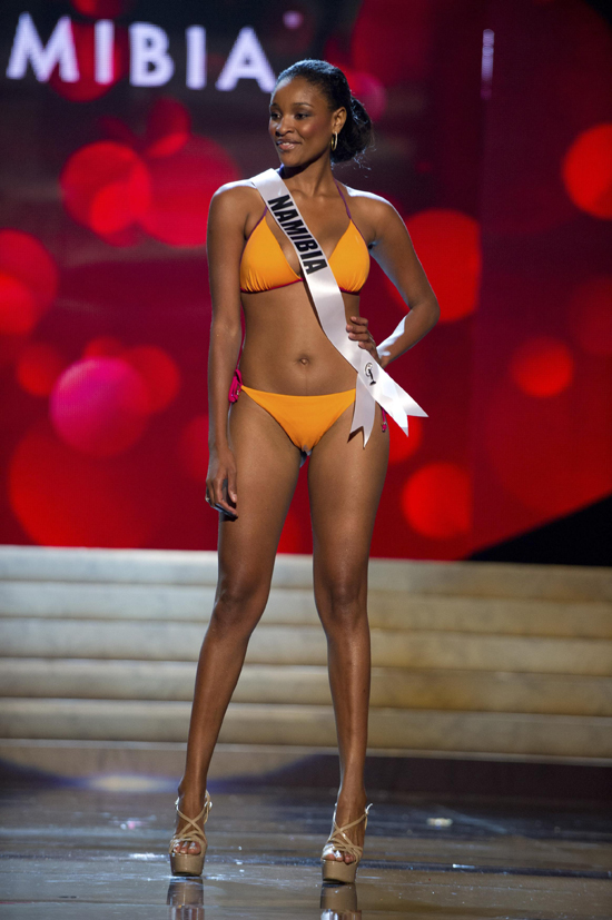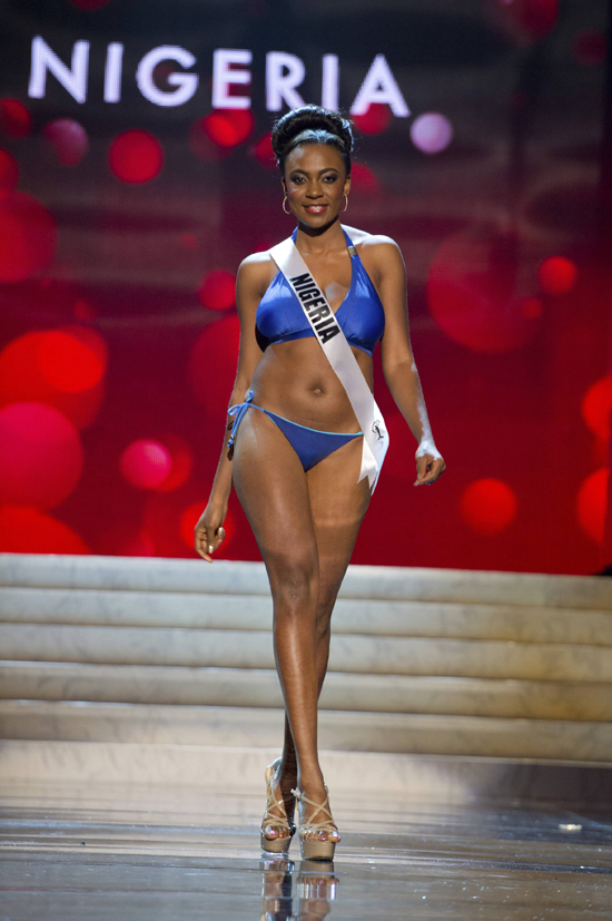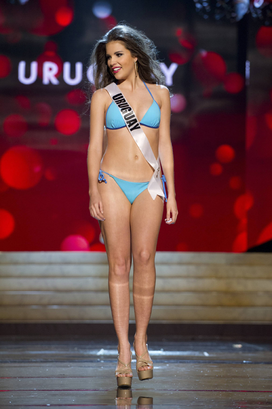 13일(현지시간) 미국 라스베이거스에서 열린 미스유니버스 선발대회에서 참가자들이 수영복 심사를 받고 있다./연합