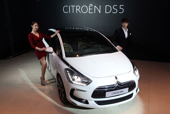 29일 오전 서울 강남구 삼성동 JBK 컨벤션홀에서 열린 '시트로엥 DS5' 공식 론칭 행사에서 모델이 '시트로엥 DS5'를 선보이고 있다. DS5는 지난해 프랑수아 올랑드 프랑스 대통령이 취임식 날 탔던 의전차량으로 주목받은 시트로엥의 플래그십 모델이다. 국내에는 2.0 HDi 모델(디젤, 163마력)이 출시될 예정이다./연합