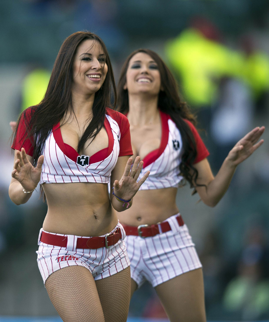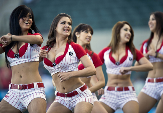 5일 멕시코 북부 소로나주 에르모시요에서 열린 카리브해 야구시리즈 베네수엘라팀과 푸에르토리코의 경기도중 치어리더들이 신나는 댄스를 선보이고 있다./연합