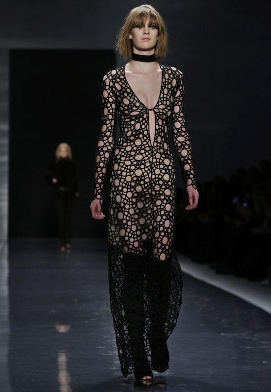 한 모델이 11일(현지시간) 미국 뉴욕에서 열린 패션위크에서 카우프만 프랑코의 2013 가을 컬렉션을 선보이고 있다./연합