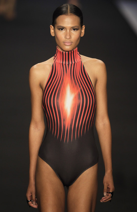 한 모델이 17일(현지시간) 브라질 리우데자네이루에서 열린 패션 리우에서 레니의 여름 컬렉션을 선보이고 있다./연합