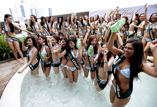 22일(현지시간) 필리핀 따귁 시티(Taguig City) '2013 Earth 미스 필리핀' 대회에 참여한 후보자들이 비키니를 입고 포즈를 취하고 있다./연합