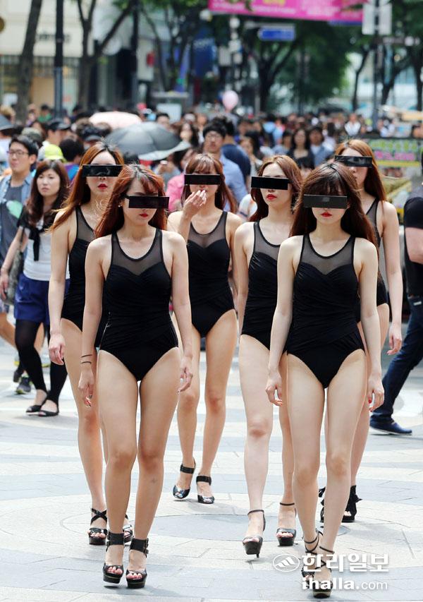 명동에 수영복 여성들이..