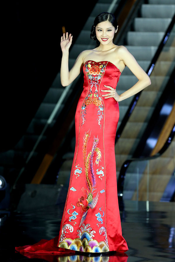 7월14일(현지시간) 중국 남부 광시 좡어 자치구 난닝에서 열린 슈퍼모델 경연대회에서 우승을 차지한 레이 슈한.연합