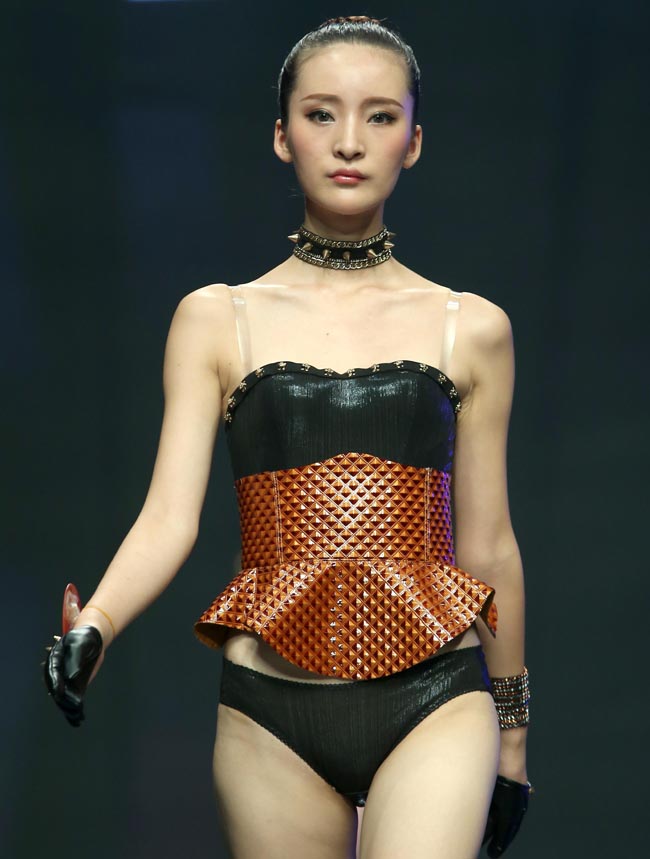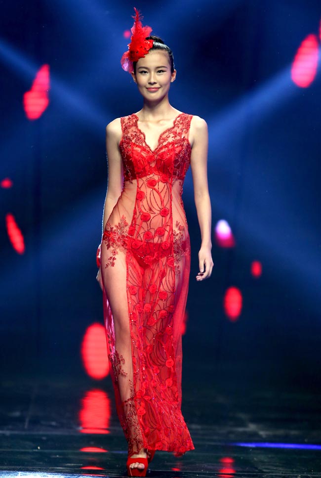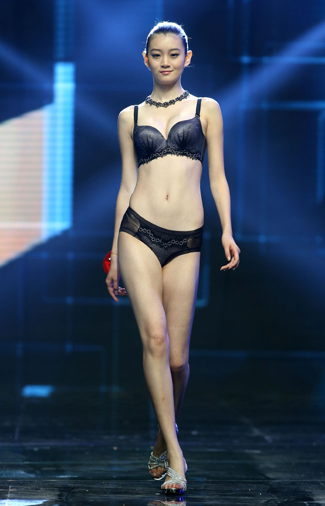 8월18일(현지시간) 중국 광동성에서 열린 모델 경연대회에서 참가 모델들이 언더웨어 패션을 선보이고 있다.연합