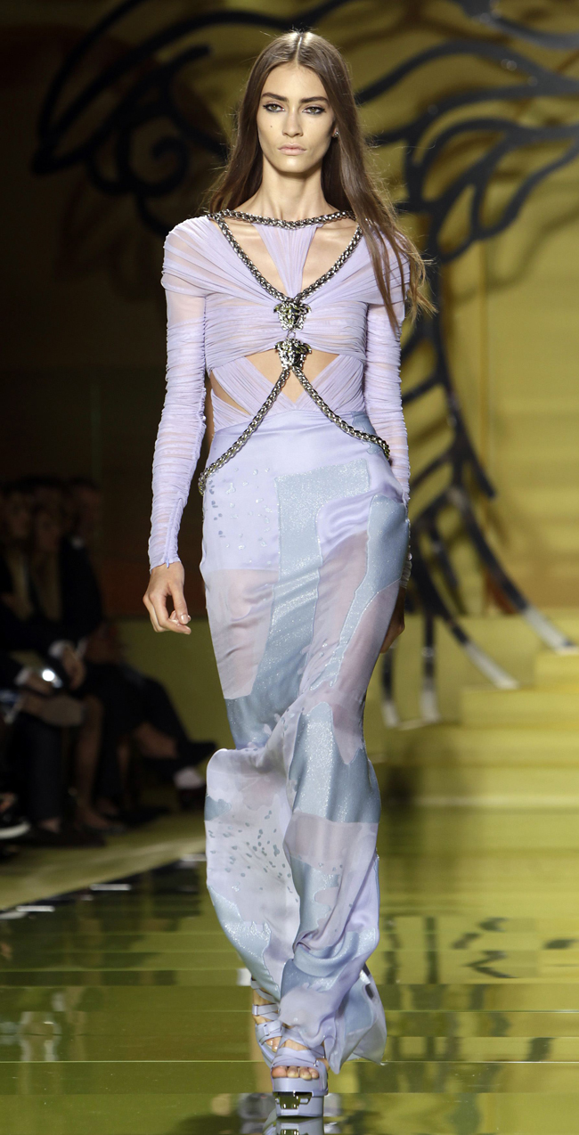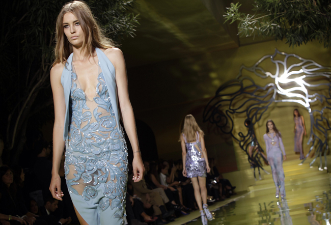 20일(현지시간) 이탈리아 밀란에서 열린 밀란 패션위크에서 모델들이 2014 봄/여름 패션을 선보이고 있다.연합