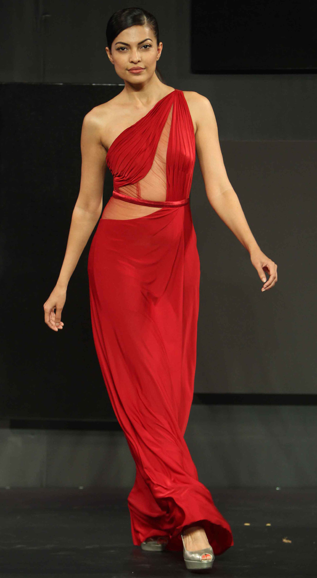 11월 23일(현지시간) 인도 뭄바이에서 열린 블렌더 프라이드 패션 투어 2013에서 모델들이 작품을 선보이고 있다.연합