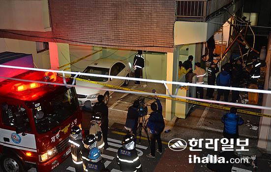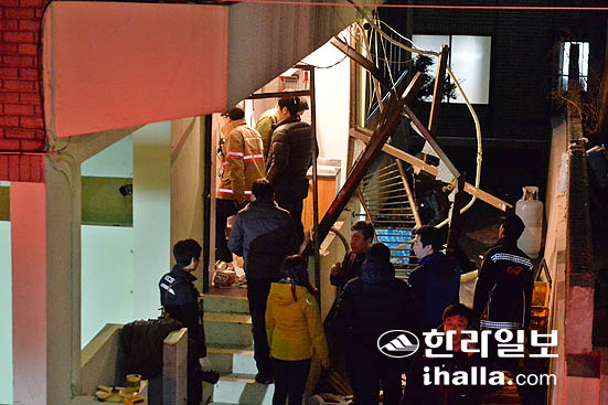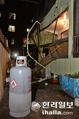 13일 저녁 제주시 화북1동 소재의 한 빌라에서 가정용 LPG 가스가 폭발하는 사고가 발생해 40대 남성이 전신화상을 입었다./사진= 강경민기자 photo6n6@ihalla.com