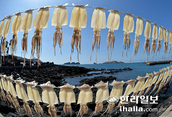 주렁주렁 매달린 오징어