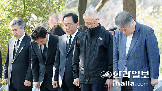 | 1일 신산공원에서 열린 제주4.3해원방사탑제에 참석한 6.4 지방선거 예비후보들. 왼쪽부터 양창식 교육감 예비후보, 원희룡 전 의원, 고희범 예비후보, 신구범 예비후보, 김우남 의원. |