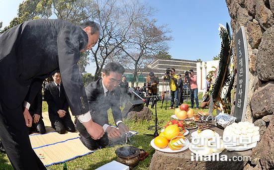 제주4·3 제66주년을 맞아 제주도민사회가 염원해 온 ‘4·3국가희생자추념일’ 지정된 가운데 제주4·3진상규명과 명예회복을 위한 도민연대는 1일 제주시 신산공원에서 제주 4·3해원방사탑제를 봉행했다. 강경민기자 photo6n6@nate.com
