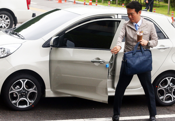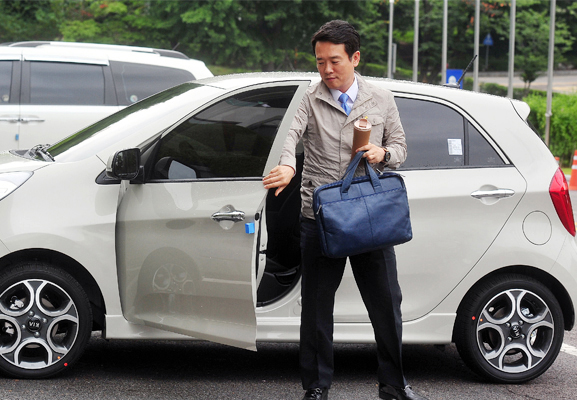▲3일 오전 남경필 경기도지사가 자신의 경차인 모닝을 타고 경기도 수원 경기도청으로 출근하고 있다. 남 지사는 "혁신도지사로서 기득권을 내려놓고 나부터 바꾸겠다. 연비도 좋고 주차하기도 편해 앞으로 출퇴근할 때 모닝을 계속 이용하겠다"고 밝혔다. 사진=연합뉴스