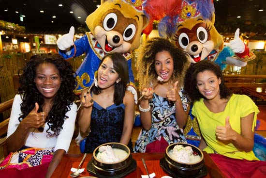 ▲말복을 하루 앞둔 6일, 브라질에서 온 롯데월드 어드벤처 삼바 공연 연기자들이 롯데월드 민속박물관 내 저자거리에서 삼계탕을 맛보고 있다. 롯데월드 어드벤처는 오는 24일까지 남미의 삼바공연을 포함한 ‘시티 바캉스’ 축제를 진행한다. 연합뉴스