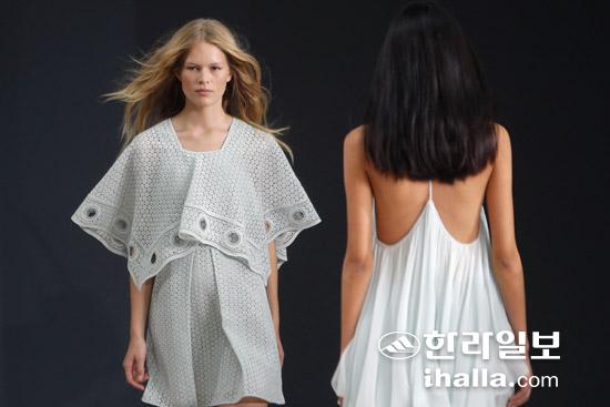 28일(현지시간) 프랑스 파리 패션위크 행사에서 모델들이 클로에 브랜드의 2015 봄/여름 기성복 컬렉션을 선보이고 있다. 연합뉴스