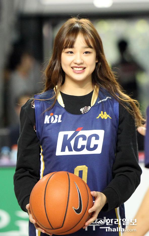 11일 전주실내체육관에서 열린 '2014-15 KCC 프로농구' 개막전 전주 KCC와 원주 동부의 경기에서 아시안게임 리듬체조 금메달리스트 손연재 선수가 시구를 하고 있다. 연합뉴스