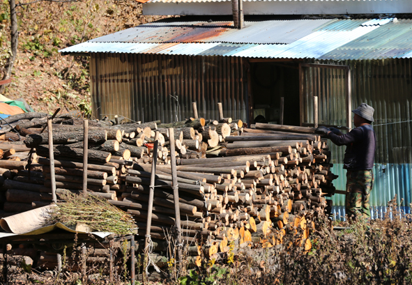 서리가 내리고 얼음이 어는 등 계절의 변화가 빠른 강원 평창군 대관령에서 27일 한 주민이 겨우내 쓸 땔감을 준비하느라 바쁜 모습이다. 연합뉴스