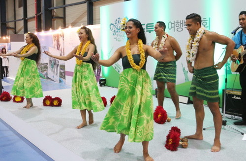 | 하와이로 오세요 31일 서울 강남구 서울무역전시장(SETEC)에서 열린 모두투어 여행박람회에서 하와이 공연단이 공연을 펼치고 있다. 연합뉴스 |