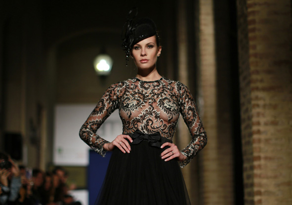 스페인 모델 제시카 뷰에노가 3일(현지시간) 스페인 남부 항구도시 서블에서 열린 '안달루시아 패션'에서 알레한드로 포스티고의 작품을 선보이고 있다. 연합뉴스