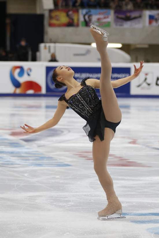 박소연이 러시아 모스크바에서 열린 2014-2015 국제빙상경기연맹(ISU) 피겨 시니어 그랑프리 4차대회 여자 싱글에서 최종 163.24점을 획득, 12명의 선수 중 5위를 차지했다. 사진은 15일(현지시간) 박소연이 프리스케이팅에서 연기를 펼치고 있는 모습. 연합뉴스