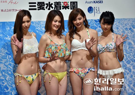 모델들이 최근 도쿄에서 열린 패션쇼에서 일본 속옷회사인 와코루의 최신 수영복브랜드인 San-ai를 선보이고 있다.[연합뉴스]