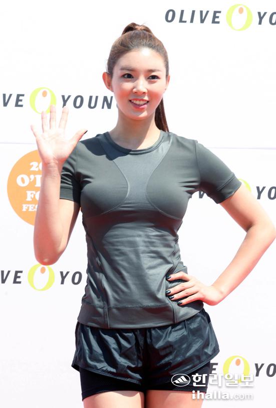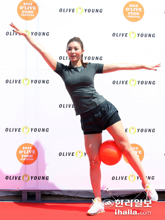 서울 여의도 서울마리나 야외광장에서 23일 열린 헬스&뷰티 스토어 '올리브영(www.oliveyoung.co.kr)'의 바디 클래스에서 유승옥이 건강하고 아름다운 몸매를 만들기 위한 포즈를 취하고 있다.<<올리브영 제공>>