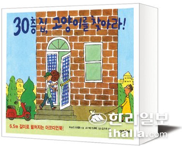 ▶30층 집, 고양이를 찾아라!(야스이 스에코 지음, 스기타 히로미 그림, 김수희 옮김)=30층 집의 1층부터 마지막 층까지를 한눈에 펼쳐볼 수 있는 아코디언북. 할머니와 함께사는 30마리의 고양이들은 할머니가 현관문을 연 순간 밖으로 모두 뛰쳐나간다. 유아들은 한 층에 한 마리씩 숨은 고양이를 찾으며 1부터 30까지 기초적인 수 개념을 배우고, 관찰력을 키우게 된다. 미래그림책. 2만원.