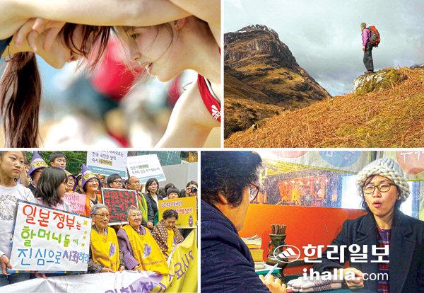 왼쪽 상단부터 시계방향으로 개막작 ‘소녀 레슬러’, 영국 최초의 여성 산악인 ‘모팻과 나’, 선호빈 감독의 다큐 ‘B급 며느리’, 폐막작으로 선정된 ‘어폴로지’.