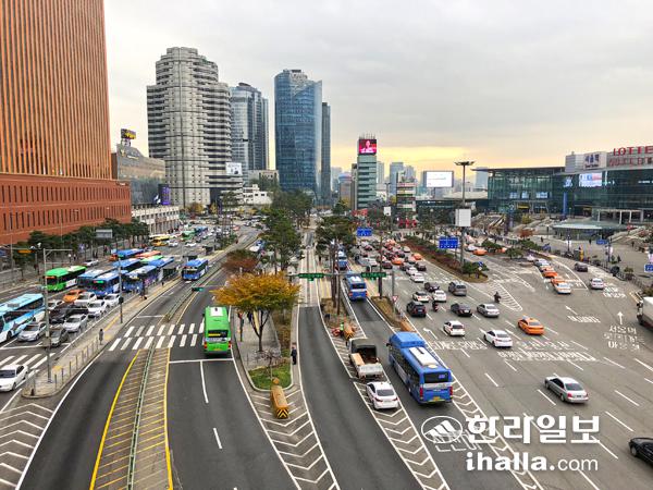 서울특별시 서울역에서 운영되고 있는 대중교통 중앙우선차로제 모습. 사진=특별취재팀