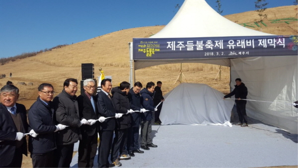김방훈 자유한국당 제주도지사 선거 예비후보는 2일 제21회 제주들불축제 행사장에 들러 들불축제를 창안한 고(故) 신철주 전 북제주군수를 기리는 들불축제유래비 제막식에 참석했다.