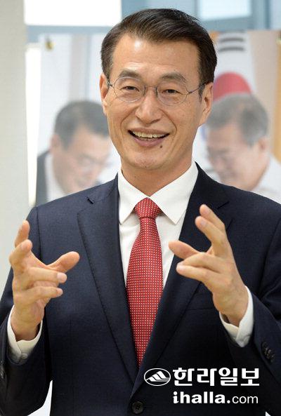 ▶도지사 출마 이유는=이번 지방선거는 촛불 시민혁명의 정신을 계승한 문재인 정부의 성공이 지역에서 귀결된다는 측면에서 매우 중요하다. 그간 제주 자연은 파헤쳐지고 삶은 더욱 팍팍해졌다. 현 도정은 협치를 주창했지만 도민과 도의회를 무시하고 불통했다. 그 결과 제주 곳곳에 갈등의 생채기가 더욱 깊어졌다. 이제 자본중심에서 사람중심으로, 개발중심에서 보존과 포용적 성장으로, 하드웨어가 아닌 콘텐츠로, 갈등이 아닌 인권과 평화의 섬으로 바뀌어야 한다.