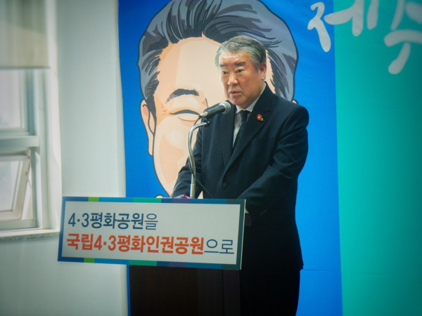 김 예비후보는 "'국립 4·3평화인권공원'으로 승격되기를 청원하는 이유는 첫째, 4·3영령들에 대한 국가의 결자해지 차원"이라며 "4·3이 국가권력의 오·남용에 의한 무고한 희생이었음을 인정한 이상 4·3은 국가가 관리 하는 것이 당연하다"고 주장했다.